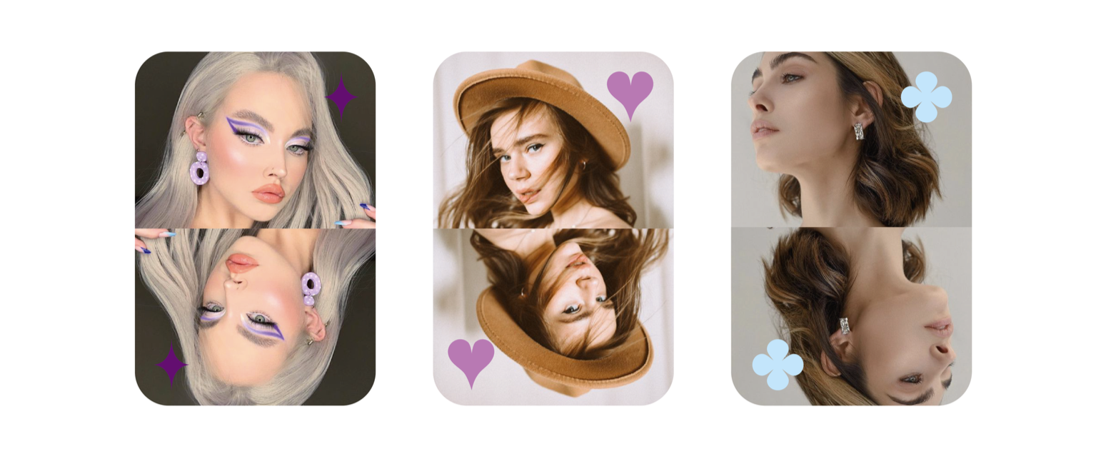 В названии бренда использован прием, с помощью которого буквы расположены не в одну линию, они играют с нашей ЦА и передают атмосферу легкости и беззаботности. Такое решение мы применили, проанализировав стиль жизни ЦА и выявив, что девушки этого возраста очень любят фотографироваться и смотреть на себя со стороны, на свое отражение. Это отражение принимают за истину, но это всего лишь отражение (игра, образ, зеркальная магия), и оно может быть искажено.